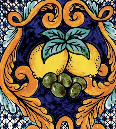 Volgens de West-Siciliaanse traditie van het schilderen op majolica worden Giuliana's kunstwerken voor Alia Skin Care gekenmerkt door de vier kenmerkende elementen die van elke majolica een uniek en kostbaar stuk maken: