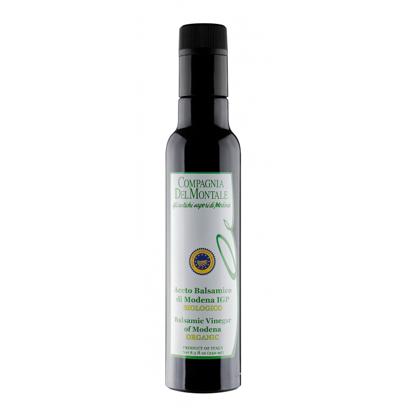 Biologische Balsamico Azijn van Modena IGP, zoetzuur en natuurlijk, uitsluitend geproduceerd met biologisch geteelde druiven met respect voor natuur en milieu, 100% Italiaans en geteeld zonder gebruik van chemicaliën.
