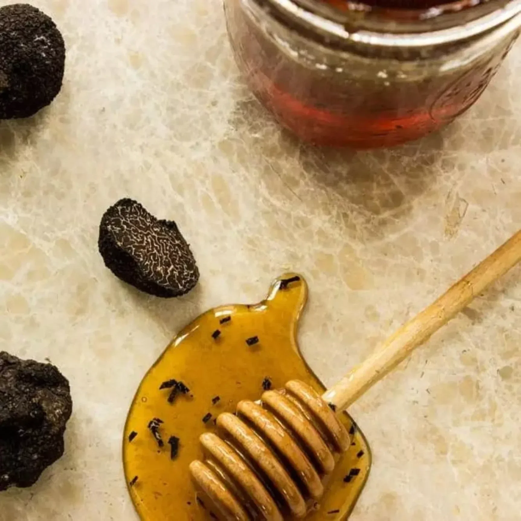 Zoete acaciahoning met zwarte zomertruffel.