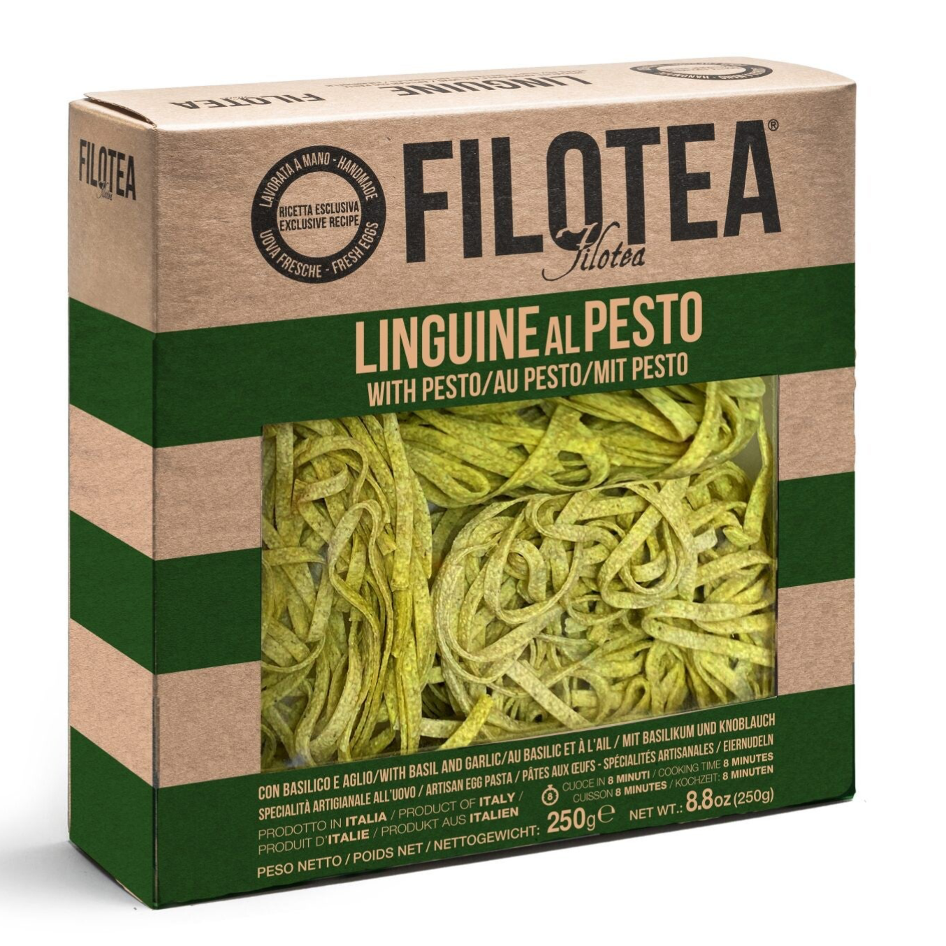 Linguine al Pesto onderscheidt zich door zijn karakteristieke groene kleur en intense basilicumgeur.