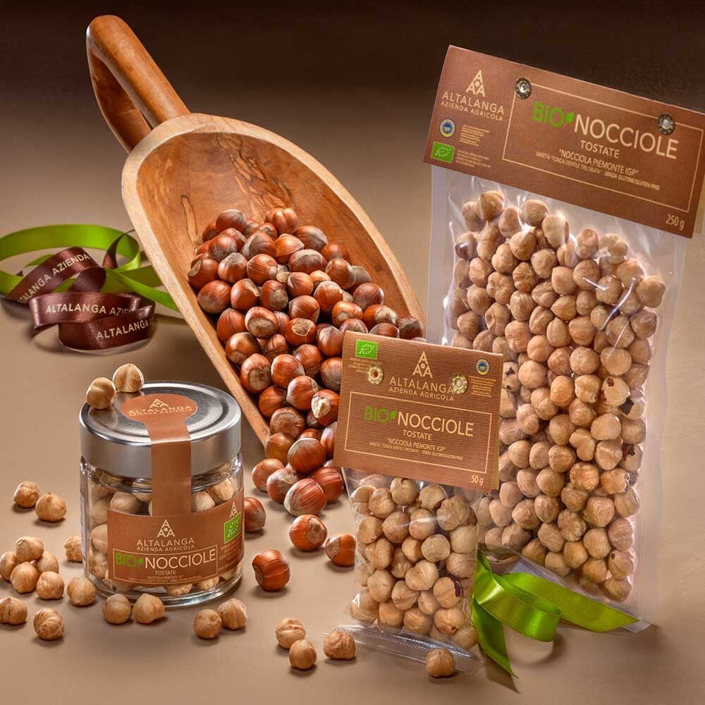 IGP hazelnoten uit Piemonte van de gewaardeerde variëteit Tonda Gentile Trilobata, ook wel het bruine goud genoemd, die alleen worden geteeld en geoogst in het hart van de Langhe. Hier zorgen de goede grond en het heuvelachtige microklimaat voor een uniek en uitstekend product, knapperig en met een intense en hartige smaak.