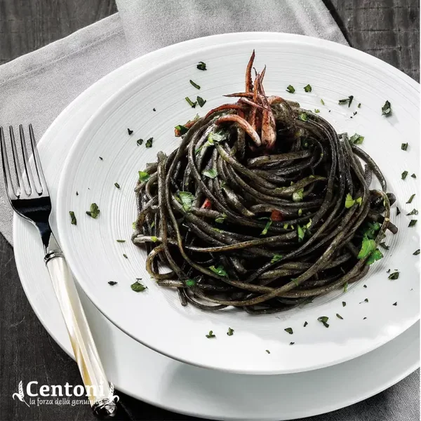 Deze specifieke pasta is gekleurd en op smaak gebracht met inktvisinkt en is perfect voor het maken van unieke en smakelijke recepten!